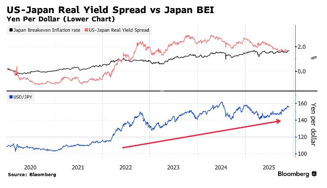鉴于日本市场对通胀上升的押注,经通胀调整后的国债收益率受到抑制,进而削弱了其对日元的支撑能力。